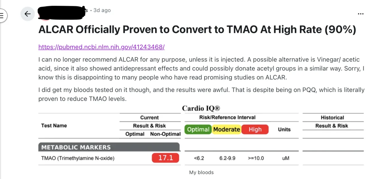 Even if you aren't supplementing with things like carnitcine or ALCAR, you can still have elevated TMAO in your blood.