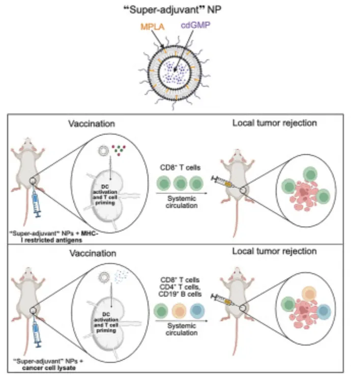 Researchers built a new nanoparticle-based vaccine using lipid particles loaded with two synergistic immune-activating molecules: