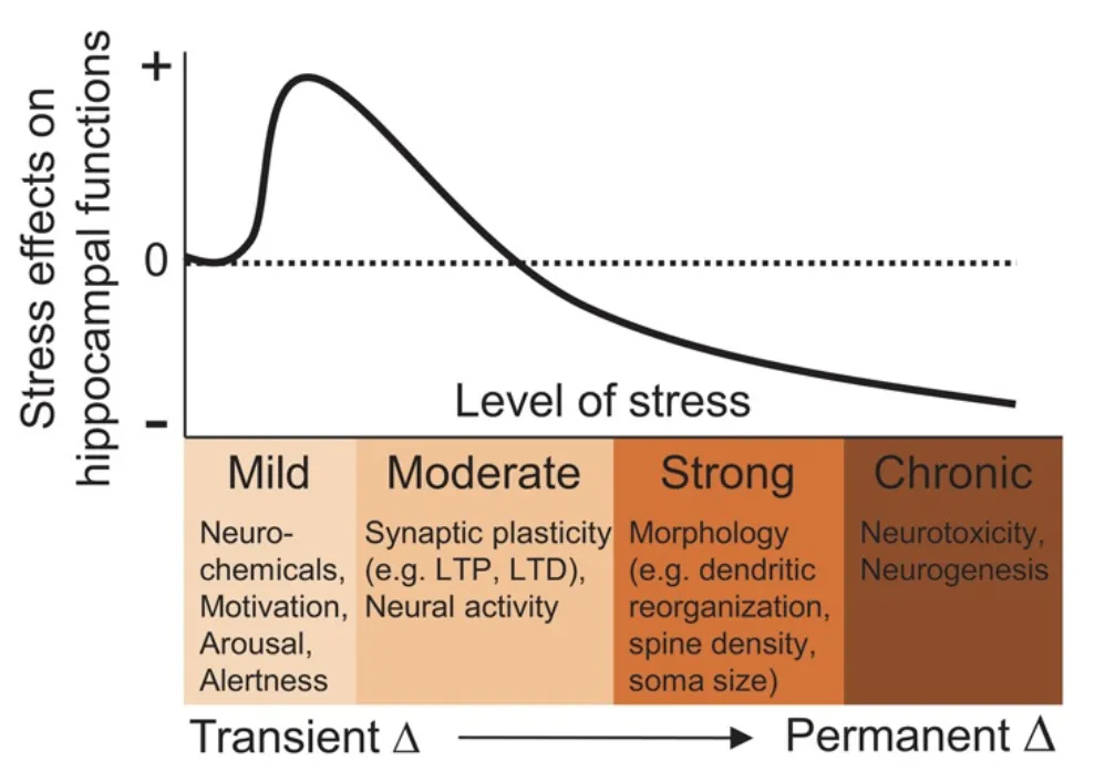 In the early phase, stress increases performance. Cortisol and stress mediators act as short-term stimulants.
